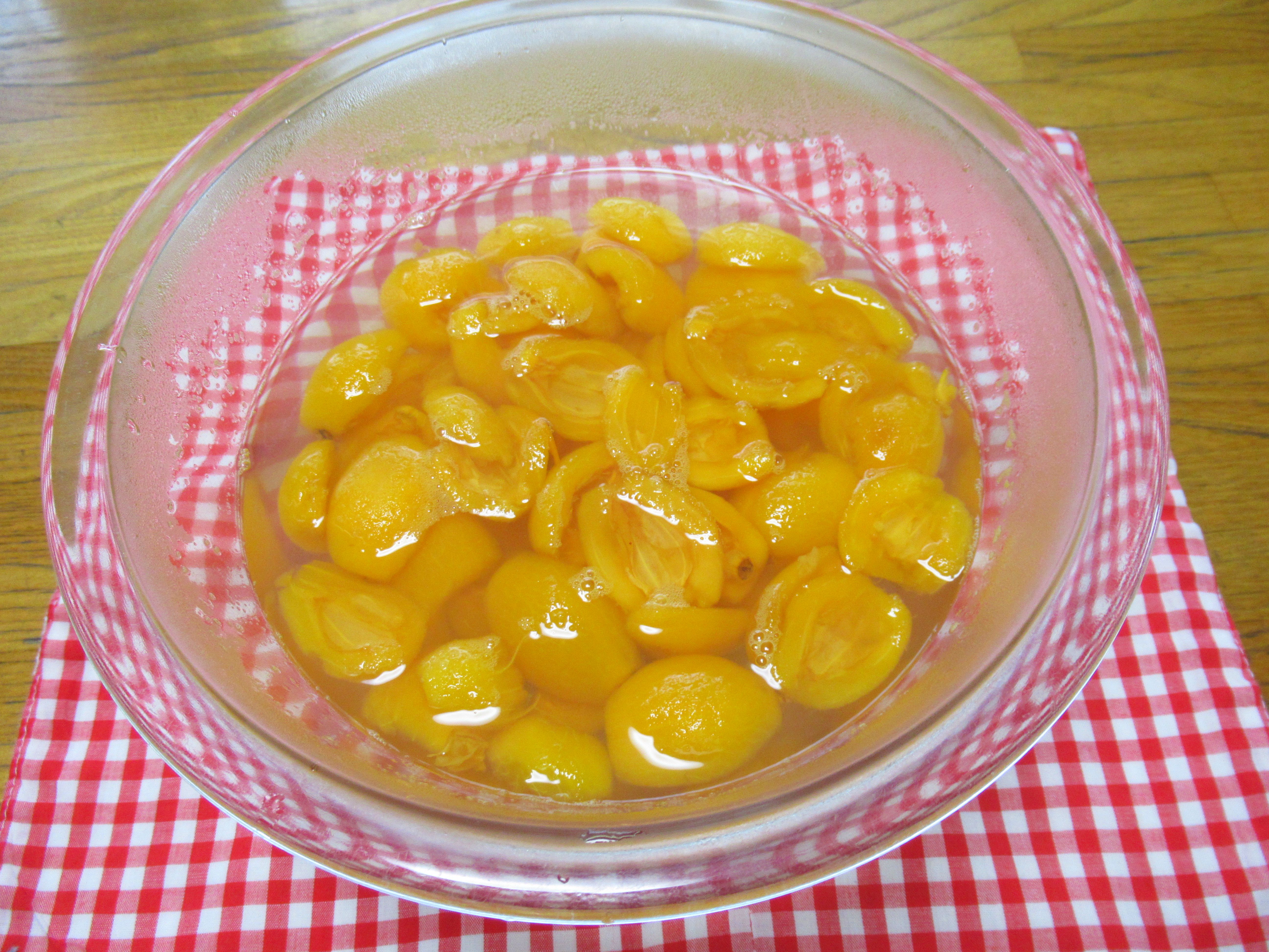 雨なので(?)屋内でビワの実のコンポートを作る。種を取り除いて皮を剥く作業がいちばん面倒だ。あとはグラニュー糖を加えてしばらく煮るだけ。